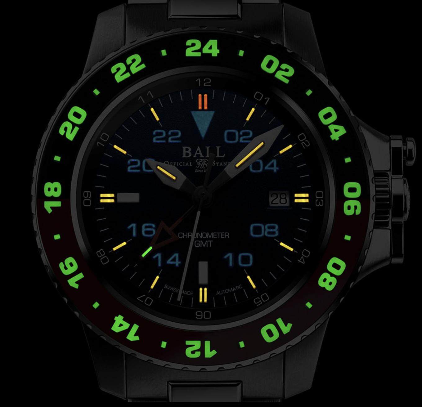 ◆ 43 micro gas tubes on hour, minute, second time zone hands, dial and bezel for night reading capability