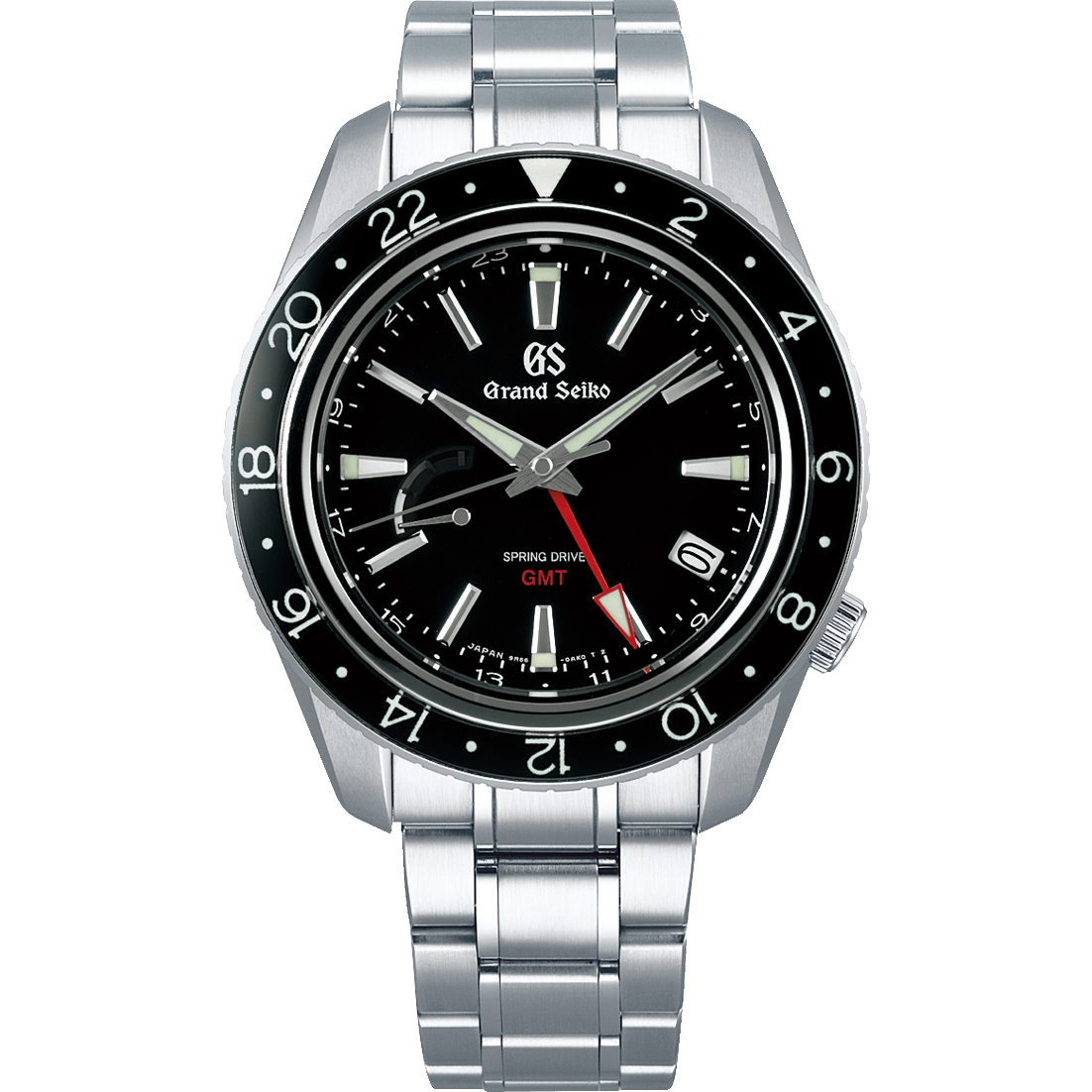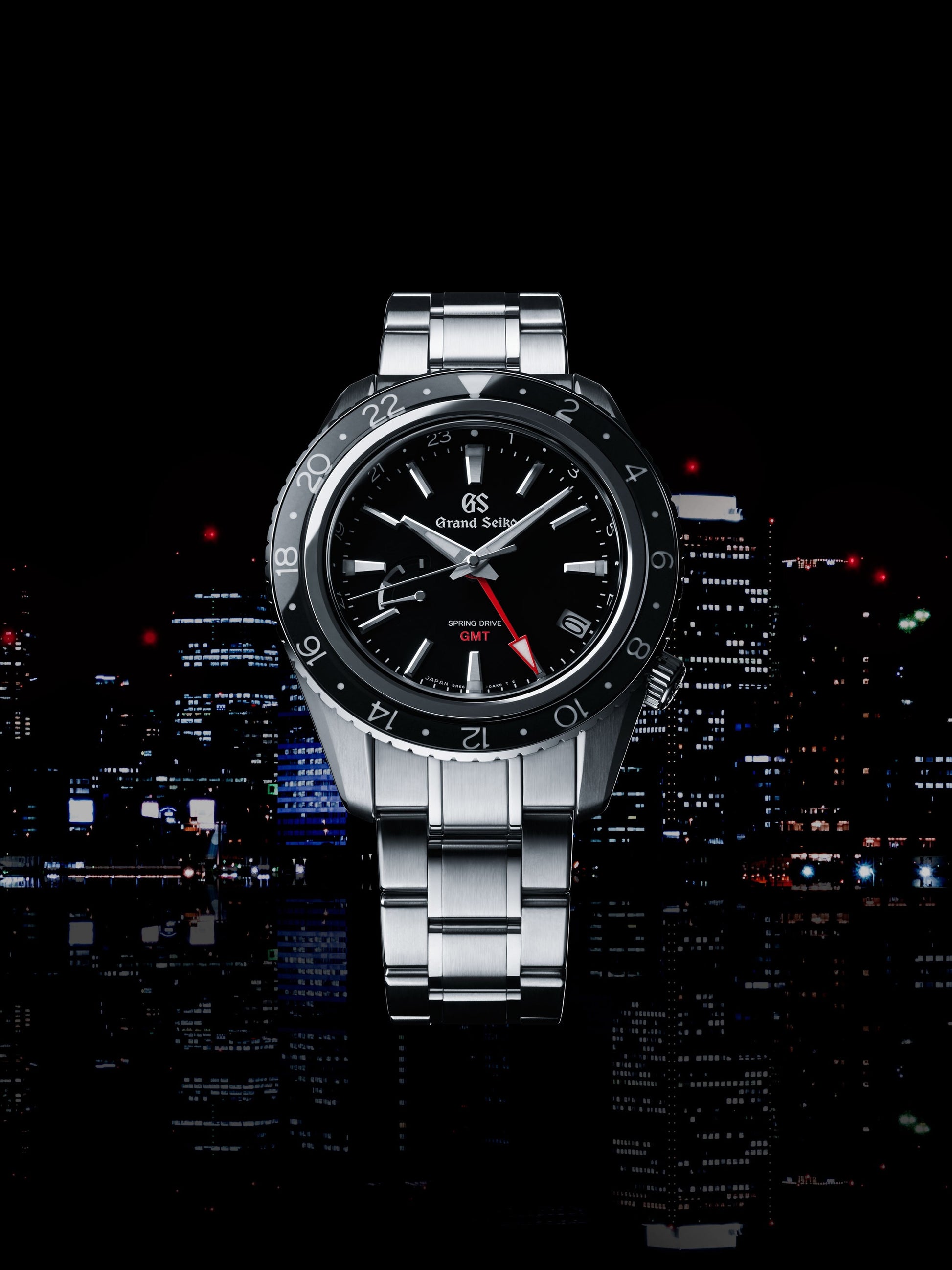 Equipped with a GMT hand, this watch features Grand Seiko’s unique Spring Drive calibre, which combines the motive force of a mainspring with the high precision of a quartz watch. The second hand movement over the black dial, further highlights a glide motion that reflects the natural and continuous flow of time itself.