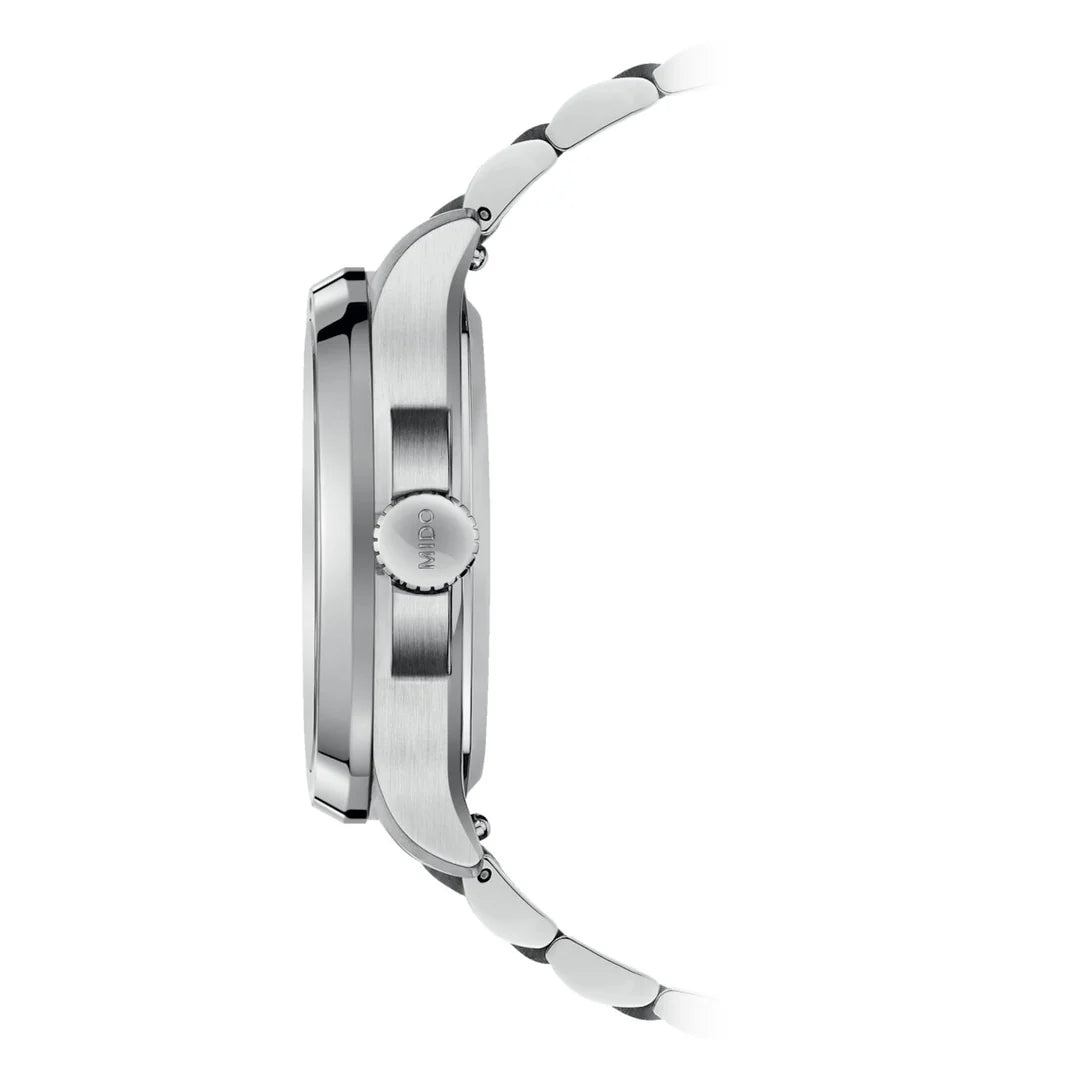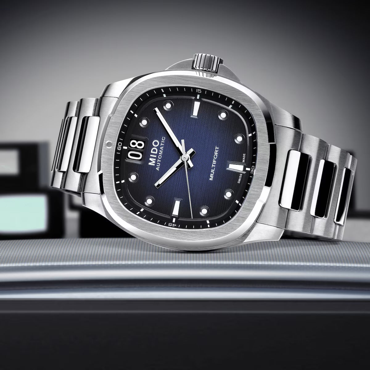 A brilliant flashback! Born from Mido's extraordinary heritage, the TV-shaped case returns to the centre stage for the Multifort TV Big Date, as intense as it is precise, thanks to its formidable mechanical movement. The modern and dynamic design of this Swiss watch is underlined by a striking horizontal brushed finish dial and, along wtih its distinctive function: the BIG DATE at 12 o'clock. Its formidable latest-generation automatic movement, Calibre 80 is equipped with a high-tech balance spring in Nivachron™ which offers outstanding resistance to shocks and magnetic fields.