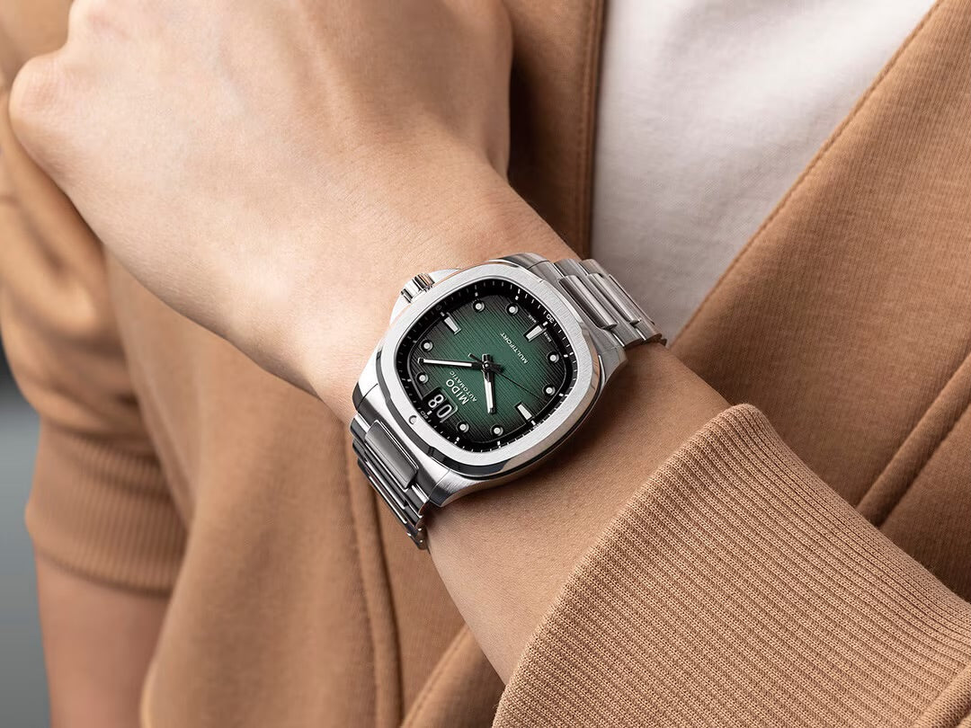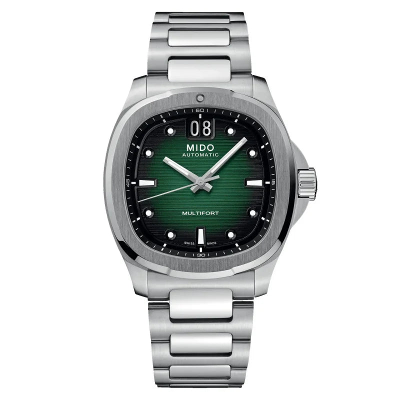 A brilliant flashback! Born from Mido's extraordinary heritage, the TV-shaped case returns to the centre stage for the Multifort TV Big Date, as intense as it is precise, thanks to its formidable mechanical movement. The modern and dynamic design of this Swiss watch is underlined by a striking horizontal brushed finish dial and, along wtih its distinctive function: the BIG DATE at 12 o'clock. Its formidable latest-generation automatic movement, Calibre 80 is equipped with a high-tech balance spring in Nivachron™ which offers outstanding resistance to shocks and magnetic fields.