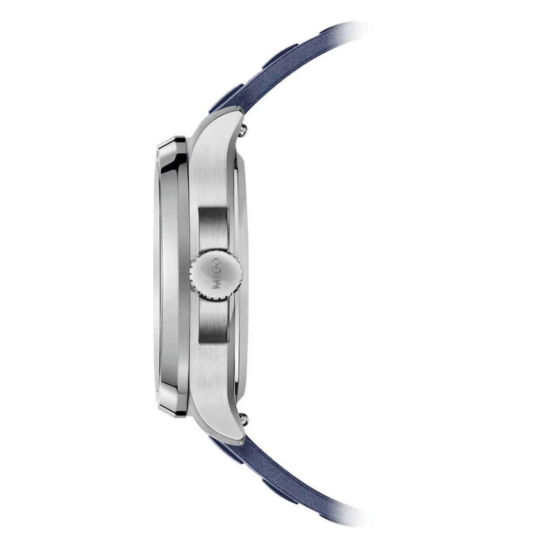 A brilliant flashback! Born from Mido's extraordinary heritage, the TV-shaped case returns to the centre stage for the Multifort TV Big Date, as intense as it is precise, thanks to its formidable mechanical movement. The modern and dynamic design of this Swiss watch is underlined by a striking horizontal brushed finish dial and, along wtih its distinctive function: the BIG DATE at 12 o'clock. Its formidable latest-generation automatic movement, Calibre 80 is equipped with a high-tech balance spring in Nivachron™ which offers outstanding resistance to shocks and magnetic fields.