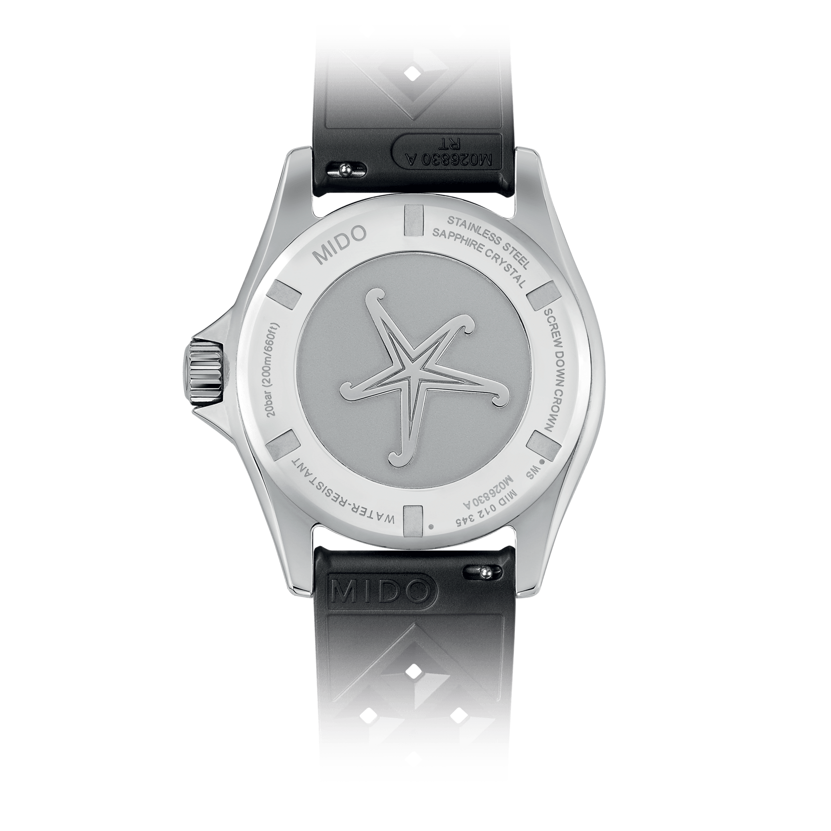20 bar (200 m / 660 ft) with screwed crown
