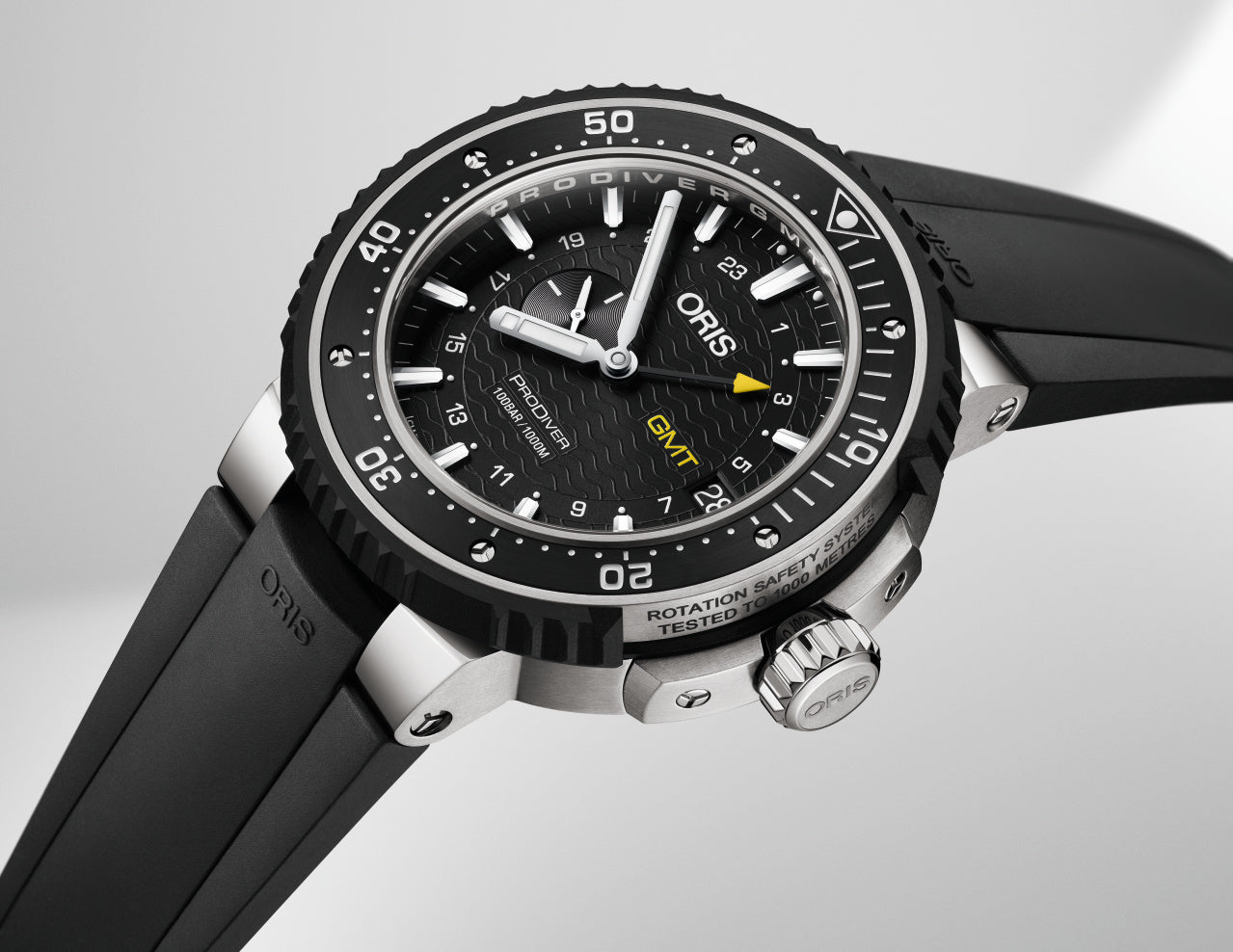 - MOVEMENT : Automatic winding GMT, small second, big date developed by Oris