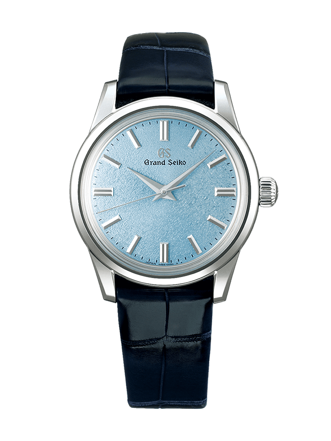 Powered by the slim, hand-wound movement, Caliber 9S64, this watch is the epitome of simple refinement. The dial is simple and clean but, when viewed through the sapphire case back, the intricate perfection of the engineering of the hand-assembled and adjusted movement is abundantly and satisfyingly clear. Thanks to a long mainspring and a balance both made of a proprietary metals, this watch has a high and stable accuracy rate and a power reserve of 72 hours. The dial is in a delicate shade of pale blue, the color of the skies above Mt. Iwate as summer begins, the season known as Kishun.